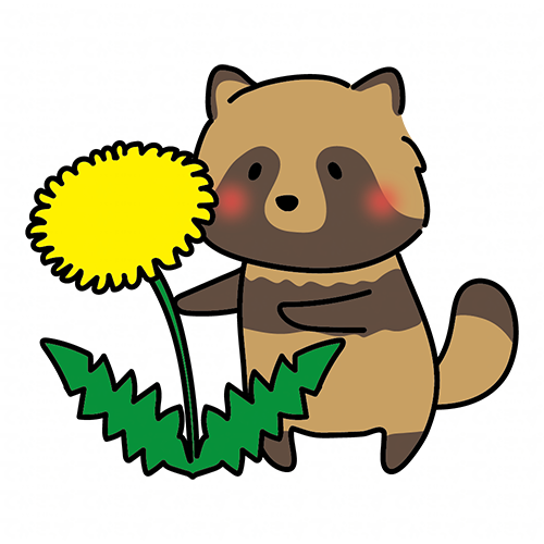 大きなタンポポとタヌキ
