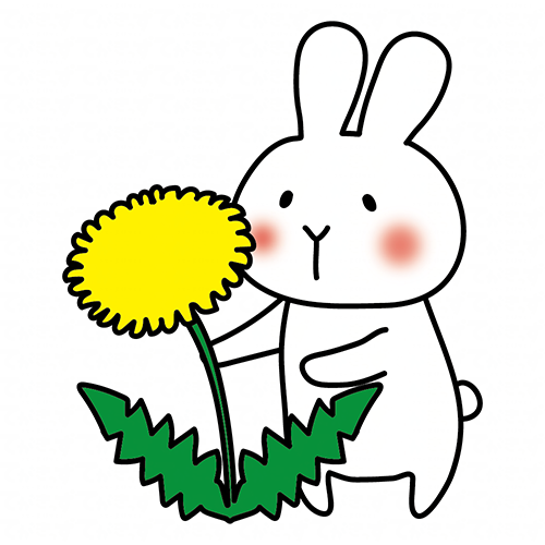 大きなタンポポと白いうさぎ
