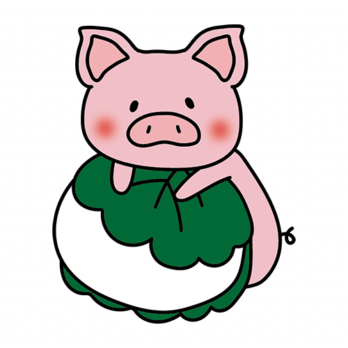 柏餅の上に乗っかるぶた