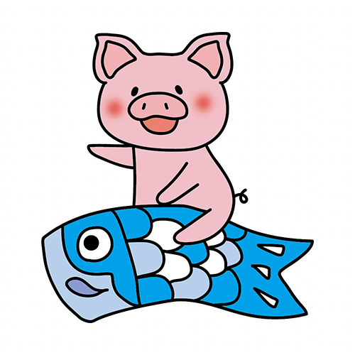 鯉のぼりにまたがるぶた