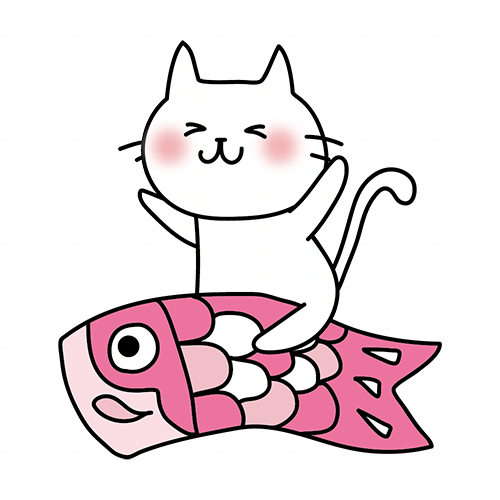 鯉のぼりにまたがる白い猫