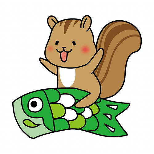 鯉のぼりにまたがるリス
