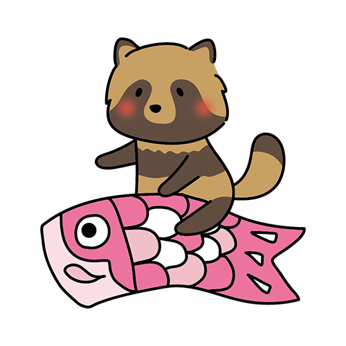 鯉のぼりにまたがるタヌキ