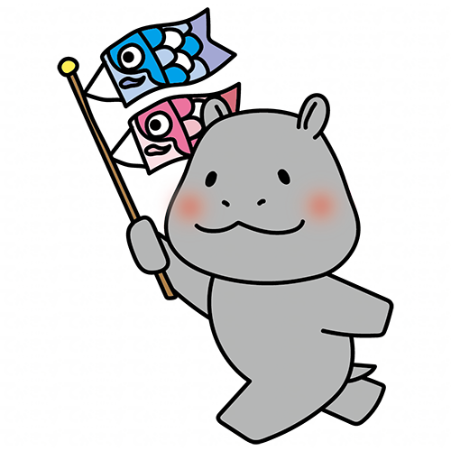 鯉のぼりを持ったカバ