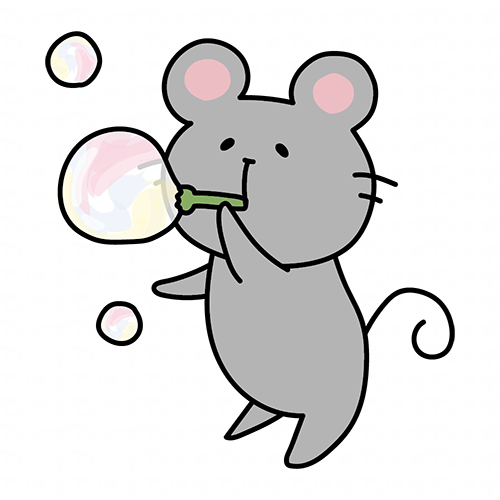 シャボン玉で遊ぶネズミ