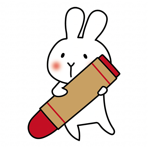 大きなクレヨンを持った白いうさぎ