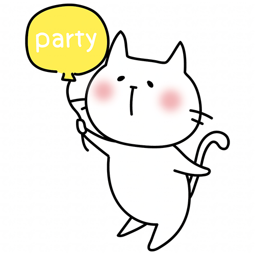パーティーの風船を持っている白い猫