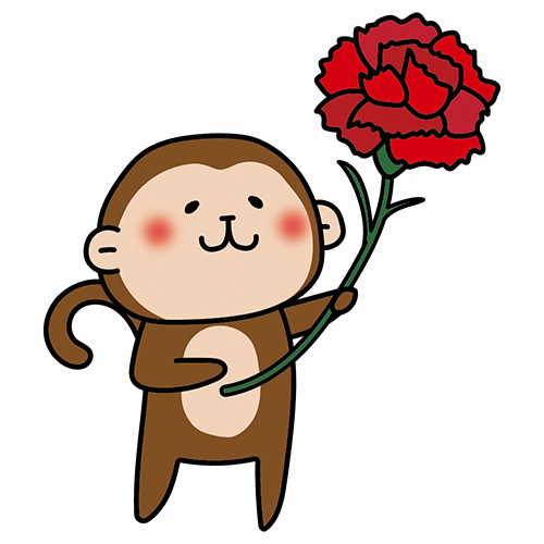 大きなカーネーションを持っている猿