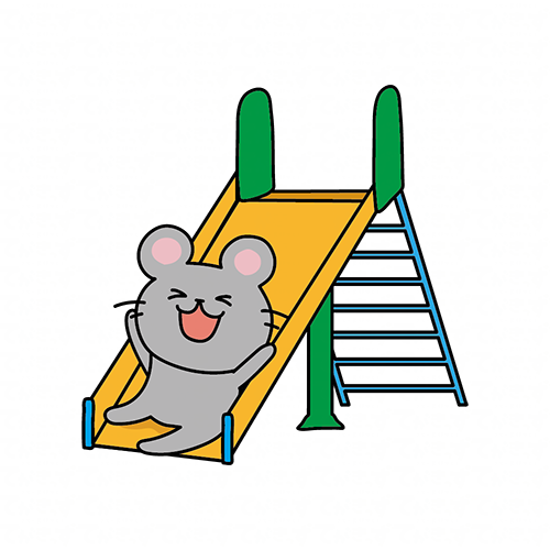 すべり台で遊ぶネズミ