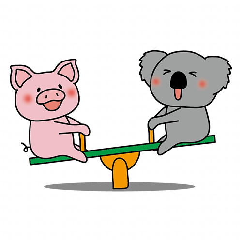 シーソーで遊ぶぶたとコアラ