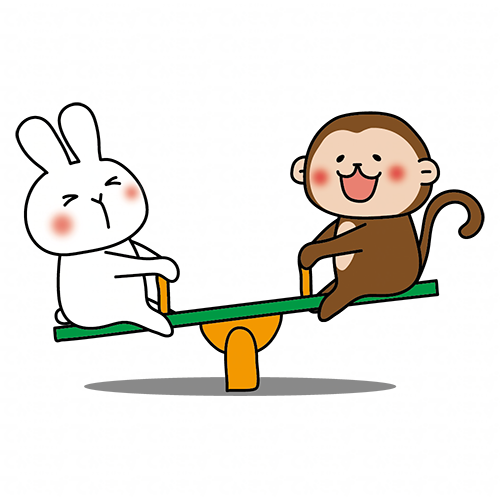 シーソーで遊ぶ白いうさぎと猿