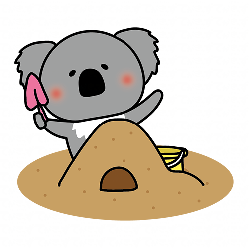 砂場で砂遊びをするコアラ