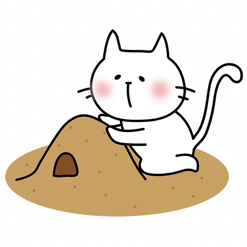 砂場で砂遊びをする白い猫