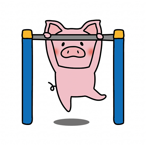鉄棒をするぶた