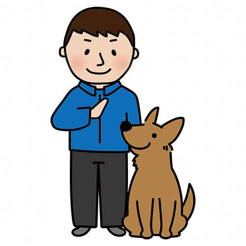 男性ドッグトレーナーと待てをする立ち耳わんちゃん