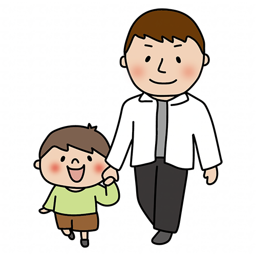 手を繋いで歩く息子とパパ