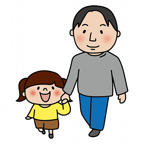 手を繋いで歩く娘とパパ