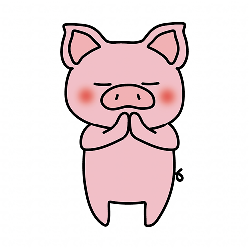 手を合わせて願い事をするぶた