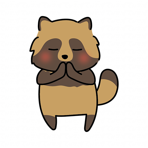 手を合わせて願い事をするタヌキ