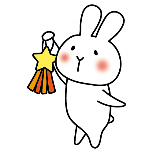 七夕の飾り付けをしている白いうさぎ
