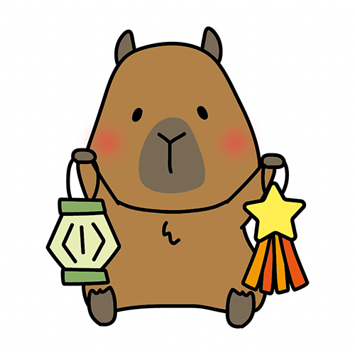 七夕飾りを持っているカピバラ