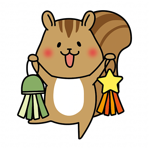 七夕飾りを持っているリス