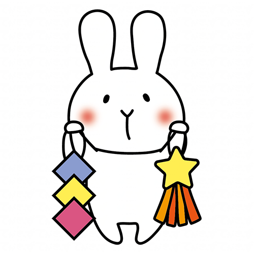 七夕飾りを持っている白いうさぎ