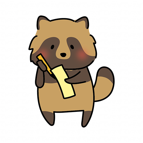 短冊に七夕の願い事を書くタヌキ