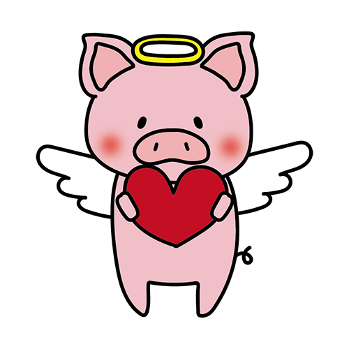 赤いハートを持っている天使の格好をフレンチブルドッグ