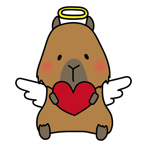 赤いハートを持っている天使の格好をしたカピバラ