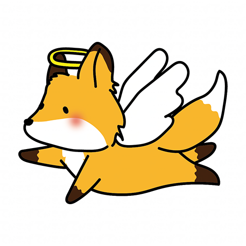 飛んでいる天使の格好をしたキツネ