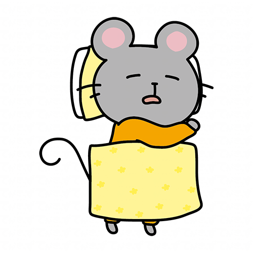 布団で寝ているネズミ