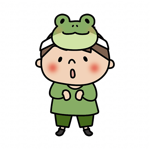 お遊戯会で蛙のお面を被った男の子