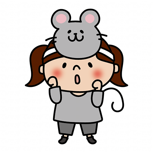 お遊戯会でネズミのお面を被った女の子