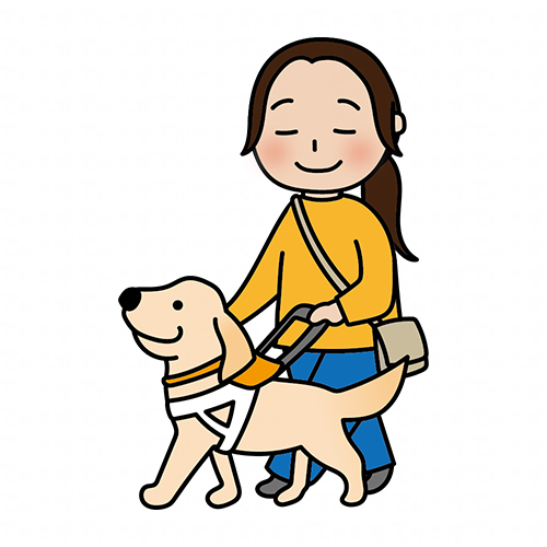 たれ耳の盲導犬と歩く女性