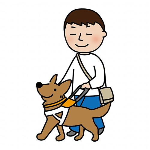 立ち耳の盲導犬と歩く男性