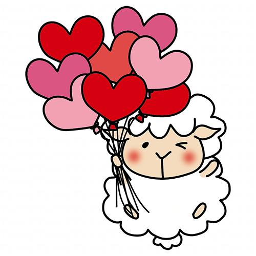 ハートの赤い風船の束を持っている羊