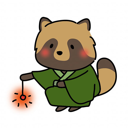 浴衣を着て手持ち花火をするタヌキ