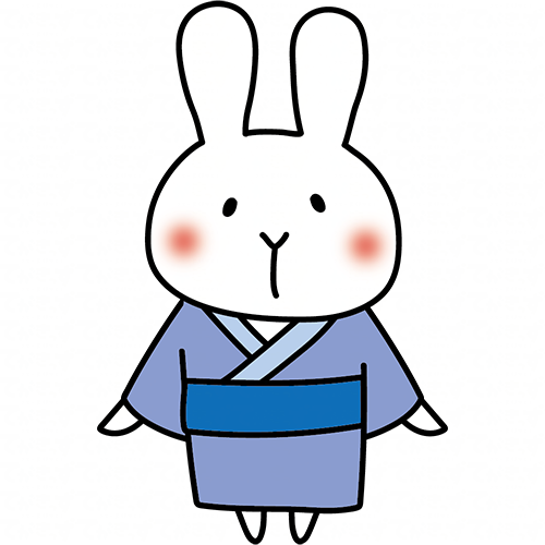 青い浴衣を着ている白いうさぎ