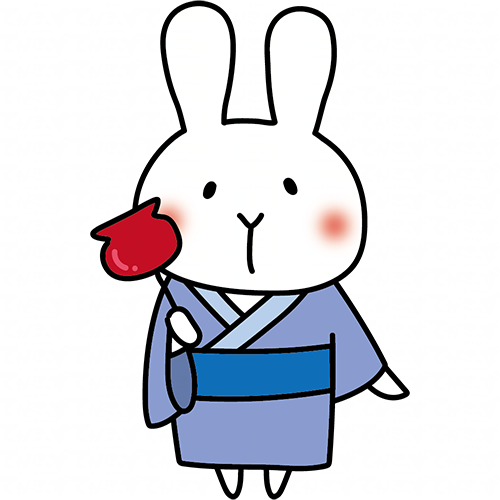 りんご飴を持っている浴衣を着た白いうさぎ