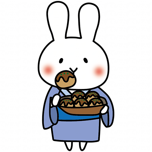 浴衣を着てたこ焼きを食べる白いうさぎ