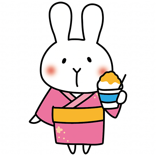 浴衣を着てたこ焼きを食べる白いうさぎ