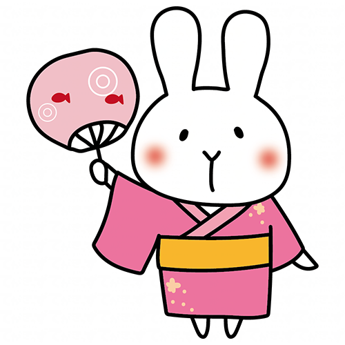 HOME動物 ピンクの浴衣を着てうちわを持っている白いうさぎ 2025年8月9日 動物 ピンクの浴衣を着てうちわを持っている白いうさぎ 浴衣を着てかき氷を食べる白いうさぎ 青い浴衣を着てうちわを持っている白いうさぎ