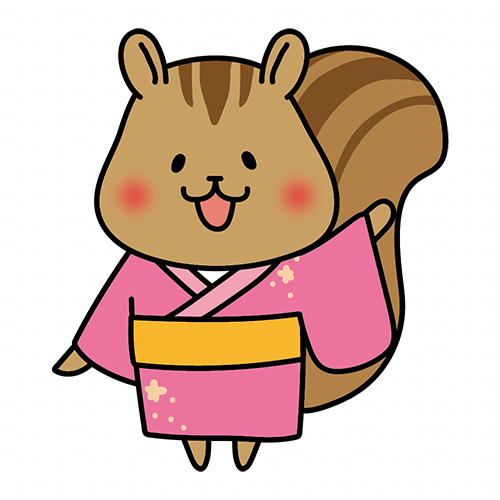 ピンクの浴衣を着ているリス