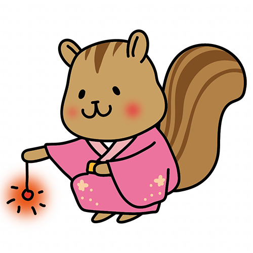 ピンクの浴衣を着て線香花火をするリス