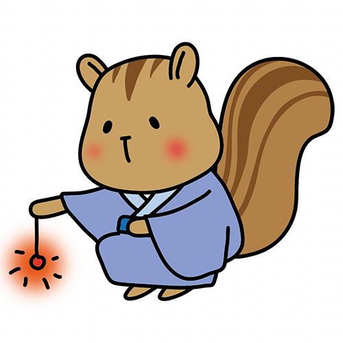 青い浴衣を着て線香花火をするリス