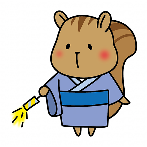 青い浴衣を着て線香花火をするリス