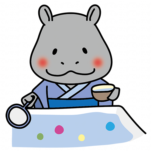 浴衣を着てたこ焼きを食べるカバ