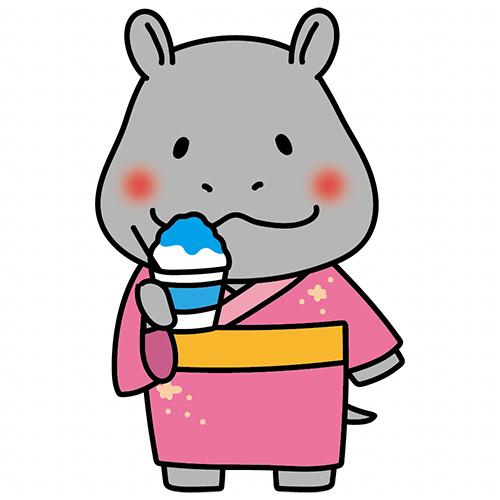 浴衣を着てかき氷を食べるカバ