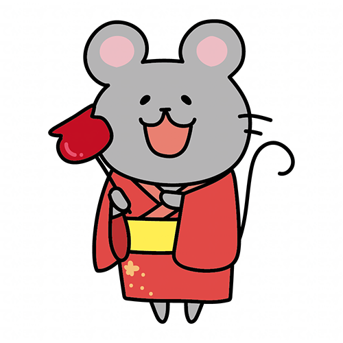 りんご飴を持っている浴衣を着たネズミ